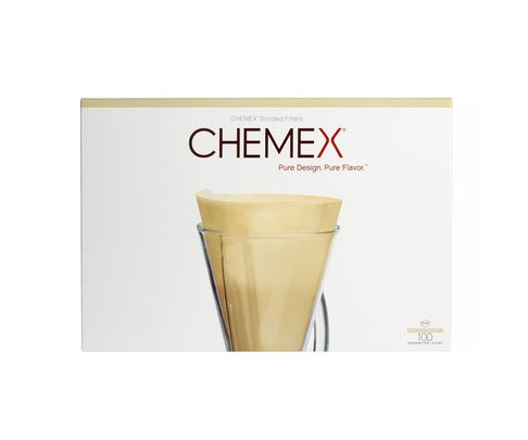 Komplet 100 sztuk brązowych papierowych filtrów przeznaczonych do zaparzacza Chemex Coffee Maker. Filtry są niezłożone, zaprojektowane do samodzielnego zagięcia.