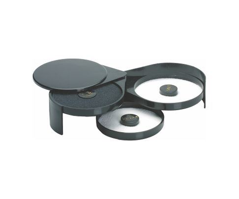 Crustownica służy do dekoracji rantów kieliszków. Składa się z 3 pojemników zamykanych przykrywką i składanych w poręczną całość.