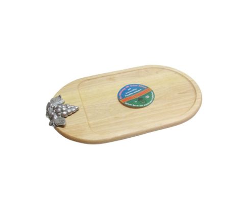Drewniana deska do owoców i serów, w owalnym kształcie z ozdobnym okuciem z metalu oraz praktycznym wyżłobieniem na odpływające soki. Szybkoschnąca i przyjazna dla żywności. Idealna do przystawek, kanapek i różnych przekąsek. Materiał: drewno naturalne Wymiary: 50 cm x 30 cm Grubość: 2 cm