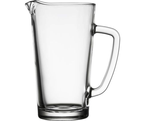 Masywny, oryginalny dzbanek do wody lub soków wykonany z wysokogatunkowego szkła. Posiada duży i wygodny uchwyt. Nalewanie jest bardzo wygodne, a praktyczny dzióbek zapobiega rozlewaniu.