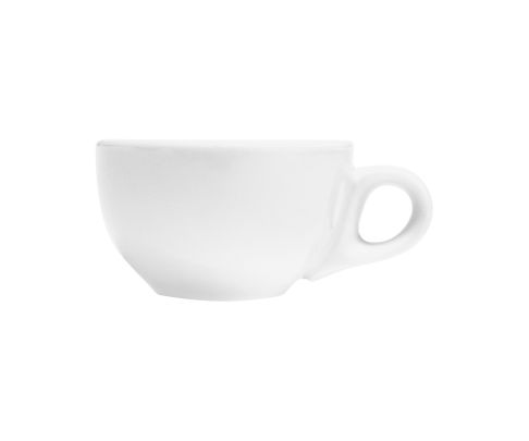 Grubościenna filiżanka w kolorze białym dedykowana do cappucino. Filiżanka wykonana jest z wysokiej jakości porcelany. Produkt sprzedawany jest bez spodka.