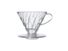 Hario V60-02 pozwala na jednorazowe zaparzenie 300 – 500 ml kawy, co daje nam nawet kilka porcji. Wersja plastikowa to najmniej kosztowny wybór wśród dripperów V-60. Mimo to, nie ustępuje on pozostałym wersjom w kwestii doznań smakowych. Ponadto, wykonanie z tworzywa sztucznego zapewnia wytrzymałość i wygodę jeśli chcemy użyć Hario V-60 w podróży. Stożkowa forma oraz specjalne żłobienia po wewnętrznej stronie drippera zapewniają doskonały przepływ wody.