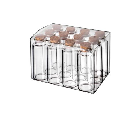 Praktyczne fiolki z korkiem mogą posłużyć do przechowywania gotowych kompozycji alkoholowych np. jako shot. Doskonale również prezentują się napełnione jako dekoracja na barze. W zestawie znajduje się 12 sztuk.