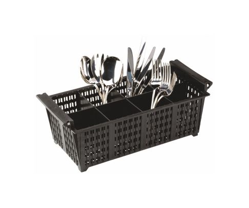 Kosz do przechowywania sztućców wyposażony jest w dwa uchwyty z każdej ze stron umożliwiające łatwe i ergonomiczne przenoszenie. 8 komór zapewnia stabilne umiejscowienie sztućców. Wytrzymała i odporna na uszkodzenia mechaniczne konstrukcja. Ścianki są na tyle elastyczne, by amortyzować drgania w transporcie. Otwarta konstrukcja kosza zapewnia doskonałą cyrkulację powietrza podczas suszenia.