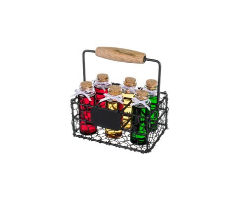 Koszyczek na przyprawy, młynki oraz bittersy z sześcioma przegródkami i rączką służącą do łatwego przenoszenia. Koszyk posiada zdejmowaną tabliczkę, na której można opisać jego zawartość.