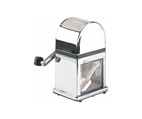 Bardzo prosta w obsłudze manualna kruszarka do lodu. Obudowa została wykonana z chromowanego stopu cynku, a nóż kruszący ze stali nierdzewnej. Do kruszarki załączono wyjmowany zasobnik na 1 kg lodu oraz białą, plastikową szufelkę. Kruszarka przeznaczona jest głównie do użytku domowego.