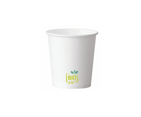 Kubek papierowy BIO jednościankowy biały, PLA. Posiada bardzo dobre właściwości termiczne i izolacyjne. Idealny do ciepłych napojów, kawy, herbaty. Do kubka pasuje wieczko o średnicy 80 mm. Opakowanie 50 sztuk.