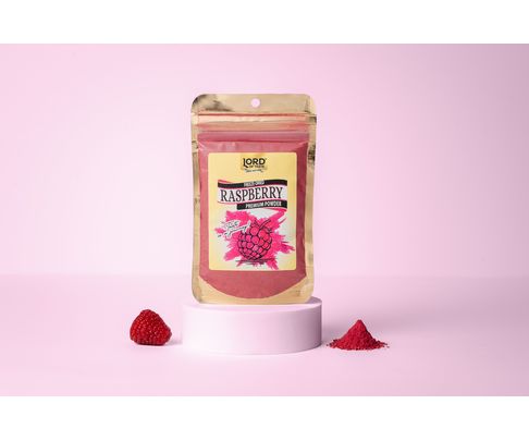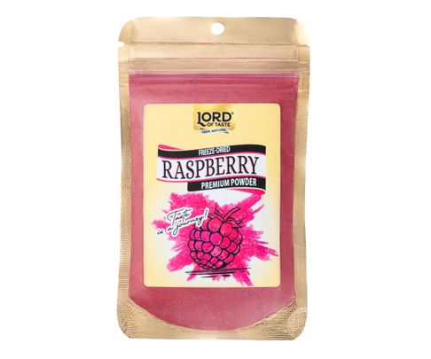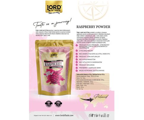 Puder z malin Lord of Taste zamknięty w szczelnym, strunowym opakowaniu pozwala na zachowanie witamin i składników mineralnych.