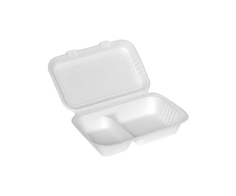 Menu Box dwudzielny, wykonany w 100% z trzciny cukrowej, całkowicie biodegradowalny i kompostowalny. Produkty z trzciny są odporne na wilgoć i temperaturę oraz neutralne smakowo. Opakowanie 50 sztuk.