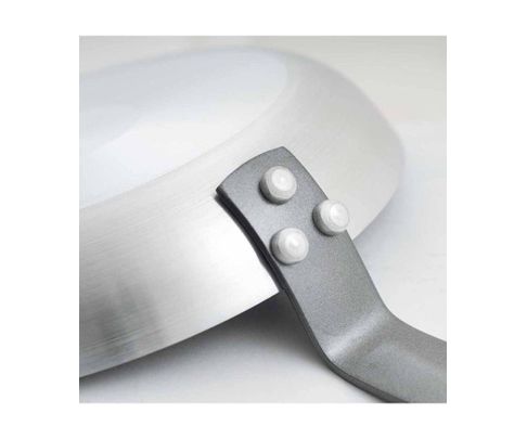 patelnia aluminiowa pokryta oryginalnym Teflonem z logo DUPONT trzywarstwowa powłoka teflonowa zapobiegająca przywieraniu, odporna na zarysowania rączka stalowa wykonana ze stali epoksydowanej zapewnia wysoką wytrzymałość termiczną dobrze i szybko rozprowadza ciepło po całej powierzchni można smażyć z niewielką ilością tłuszczu grubość ścianki 4 mm