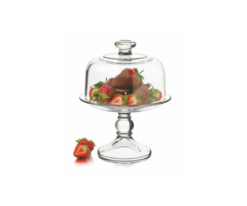 Patera na ciasto wykonana jest ze szkła. Elementem uzupełniającym jest przykrywka dzięki której produkty w środku będą dłużej zachowywały swoją świeżość. Lekka i stabilna konstrukcja ułatwia przenoszenie jej. Jest łatwa w myciu i czyszczeniu.