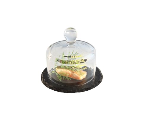 Patera ze szklaną przykrywką wykonana z naturalnego kamienia łupkowego. Schłodzona posiada doskonałe właściwości termoizolacyjne. Specjalnie zaimpregnowana, wodoodporna powierzchnia pozwala na bezpośredni kontakt z żywnością. Produkt ie nadaje się do mycia w zmywarkach.