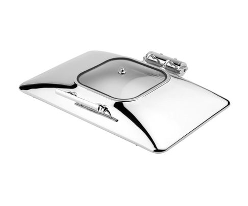 Podgrzewacz APS GLOBE na paliwo/pastę GN1/1 z pełną pokrywą do zastosowania gastronomicznego. Specjalny uchylny system zamykania wyposażony w hamulec pozwalający na otwieranie pod dowolnym kątem.