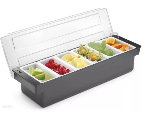 Pojemnik posiada 6 oddzielnych przegródek o pojemności 473 ml, które można wymieniać. Wyposażony jest w zamykaną pokrywę, która zapobiega wysychaniu owoców. Stosowany jest głównie do przechowywania krojonych owoców.