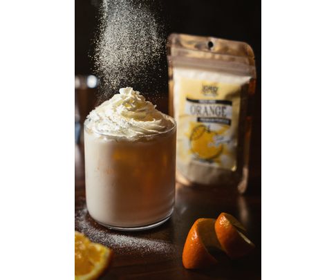 kremów. Wyjątkowe walory pudru z pomarańczy zostaną docenione w kawiarniach i barach, gdzie może być używany do dekoracji napojów posiadających pianę.