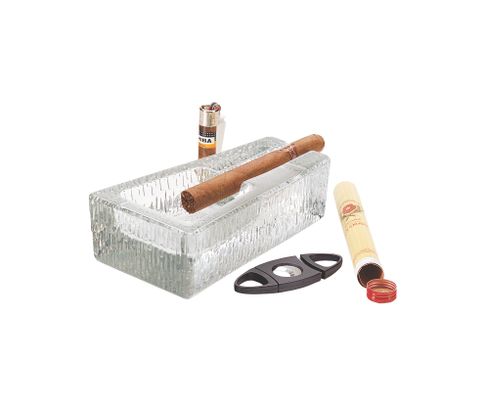 Popielniczka do cygar wykonana jest z grubego, solidnego szkła, odpornego na uszkodzenia.