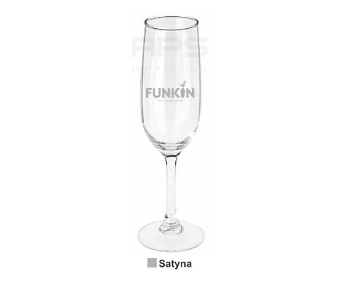 Wysokiej jakości, elegancki kieliszek do szampana logo FUNKIN Wykonany z delikatnego szkła. Kieliszek ten charakteryzuje się smukłą, wysoką budową oraz długą nóżką na stabilnej podstawie.