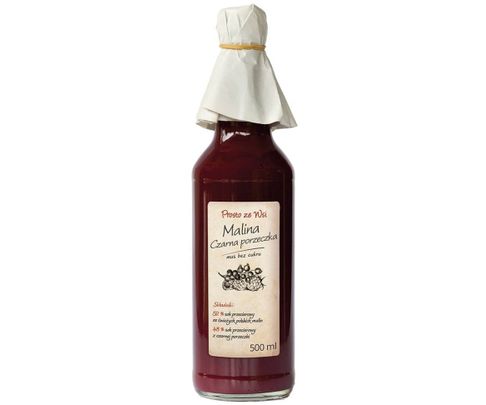 Malinowo- porzeczkowy mus bez dodatku cukru, pasteryzowany. Nie zawiera pestek. Zrobiony metodą rzemieślniczą ze świeżych, polskich owoców przecieranych na zimno. Można używać do sporządzania napojów oraz jako dodatek do potraw i deserów.