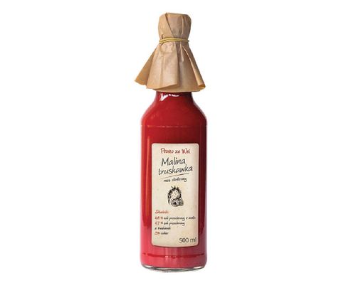 Malinowo-truskawkowy mus słodzony, pasteryzowany. Nie zawiera pestek. Zrobiony metodą rzemieślniczą ze świeżych, polskich owoców przecieranych na zimno. Można używać do sporządzania napojów oraz jako dodatek do potraw i deserów.