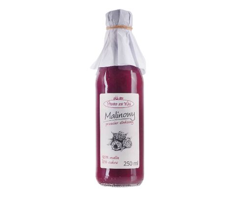Malinowy mus słodzony, pasteryzowany. Nie zawiera pestek. Zrobiony metodą rzemieślniczą ze świeżych, polskich owoców przecieranych na zimno. Można używać do sporządzania napojów oraz jako dodatek do potraw i deserów.