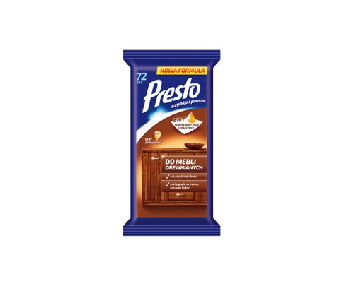 Ściereczki czyszczące, nawilżane przeznaczone do czyszczenia mebli drewnianych lakierowanych oraz produktów z materiałów drewnopodobnych. Usuwają brud i kurz, pozostawiając powierzchnie czyste dzięki zawartości niejonowych środków powierzchniowo czynnych. Formuła wzbogacona emulsją oleju silikonowego pielęgnuje i nabłyszcza drewno. Zawartość w ściereczkach lotnego silikonu sprawia że na czyszczonych powierzchniach nie powstają smugi.