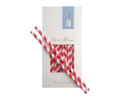 Słomki Rurki cocktailowe Jumbo, papierowe, wzór biało-czerwone paski