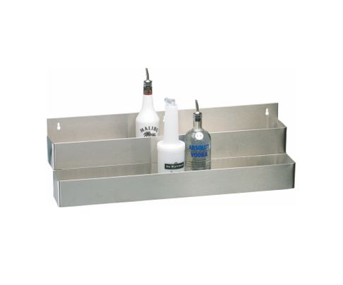 Praktyczna rynna na butelki dwustopniowa. Dzięki specjalnym otworom można zawiesić ją za barem w dowolnym miejscu. Maksymalnie pomieści 16 standardowych rozmiarów butelek w dwóch rzędach.