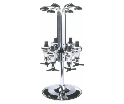 Bardzo wytrzymały stojak obrotowy na 6 butelek z dyspenserem. Posiada 20 ml porcjomierz alkoholu.
