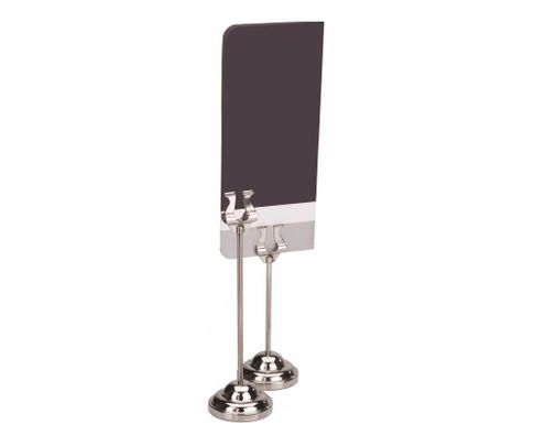 Duży stojak na menu. Posiada solidne szczypce gwarantujące stabilne utrzymanie dowolnego menu.
