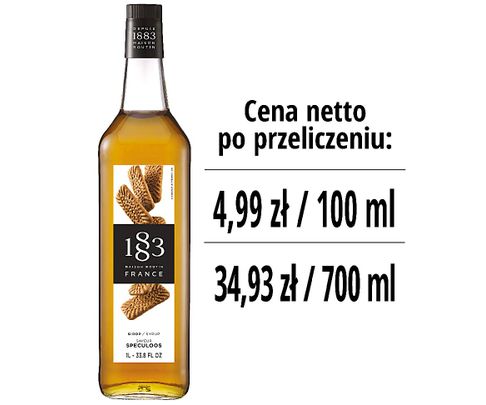 Syrop Speculoos 1883, dzięki nieodpartemu aromatowi pikantnego i chrupiącego biszkoptu, uwydatnia smak słynnego ciasteczka cynamonowego, zrównoważony nutami brązowego cukru, imbiru i gałki muszkatołowej. Wyprodukowany ze starannie wyselekcjonowanych składników syrop Speculoos 1883 składa się z czystego cukru trzcinowego i jego sekretnego składnika, czystej wody z Alp.