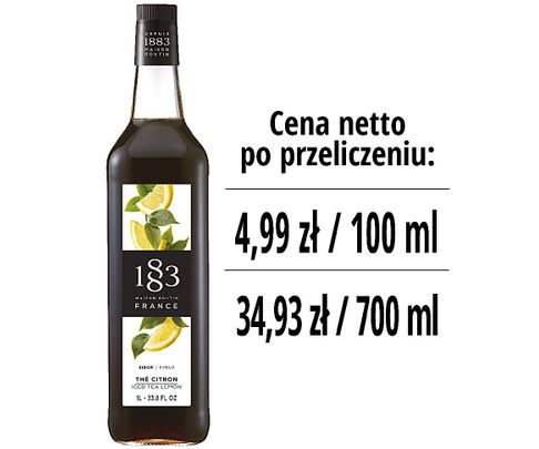 Dzięki intensywnym aromatom czarnej herbaty i świeżo pokrojone cytryny, syrop herbata cytrynowa 1883 ma cytrynowy smak z orzeźwiającym czarnym wykończeniem herbaty. Herbata z cytryną 1883 jest wykonana ze starannie wyselekcjonowanych składników, w tym naturalnego cukru trzcinowego i naszego sekretnego składnika, czystej wody alpejskiej.
