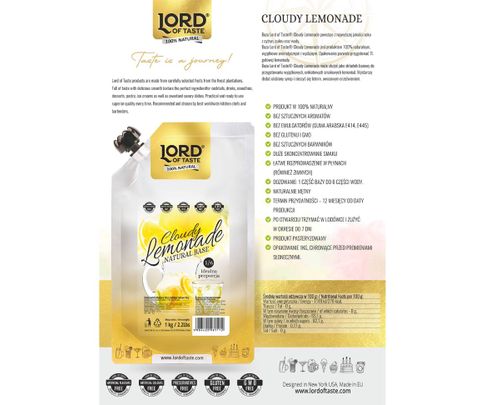 Baza Lord of Taste Cloudy Lemonade jest produktem 100% naturalnym, wyjątkowo aromatycznym i wydajnym.