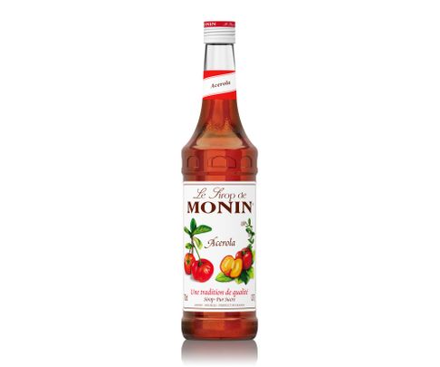 Acerola to owoc z Ameryki Środkowej i Południowej spokrewniony z wiśnią, posiada złoty i soczysty miąższ. Zawiera aż 30 razy więcej witaminy C niż cytryna. Syrop Monin Acerola idealnie pasuje do łamania klasycznych kompozycji. Zawiera wyłącznie naturalne aromaty. Może mieć zastosowanie do cocktaili, deserów i lemoniad.