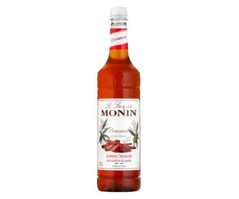 Syrop cynamonowy francuskiego producenta MONIN w plastikowej butelce,1l Syrop o barwie jasnego bursztynu i wybornym smaku cynamonu. Bardzo dobrze sprawdzi się jako dodatek do kawy, herbaty i koktajli.