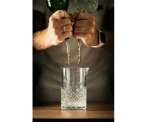 Szklanica barmańska z lejkiem wykonana z bardzo grubego i mocnego szkła. Doskonała do mieszania składników płynnych wykorzystywanych przy tworzeniu kompozycji alkoholowych. Produkt nie nadaje się do mycia w zmywarkach.