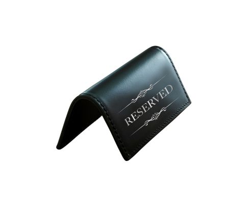 Dwustronna tabliczka rezerwacja PREMIUM (Reserved) wykonana ze skóry spectro. Druk wykonany metodą hot-stampingu (tłoczenia).