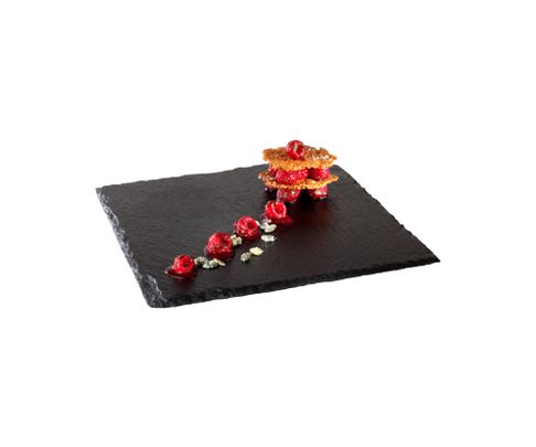 Łupek jest produktem naturalnym. Schłodzona taca kwadratowa posiada doskonałe właściwości termoizolacyjne. Specjalnie zaimpregnowana, wodoodporna powierzchnia pozwala na bezpośredni kontakt z żywnością. Krawędzie tacy są łamane dzięki czemu ukazana jest naturalna struktura prawdziwego kamienia. Pielęgnacja – mycie za pomocą delikatnych detergentów i miękkich gąbek. Produkt nie nadaje się do mycia w zmywarkach.