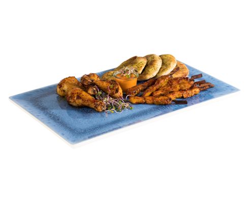 Talerz płytki prostokątny wykonany z trwałej melaminy doskonale nadaje się do serwowania małych przekąsek lub przystawek. Może być używany w temperaturach od -30 do +70 stopni Celsjusza. Nadaje się do mycia w zmywarkach.