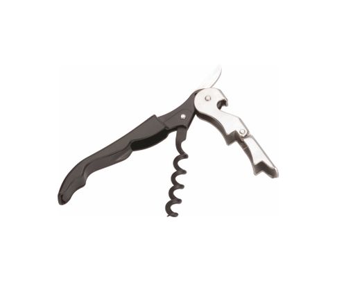 Otwieracz do wina dwustopniowy ułatwiający wyciąganie korka z butelki w pozycji pionowej. Posiada spiralę pokrytą teflonem, która zapobiega kruszeniu się korka oraz ostry nożyk do ścinania folii.
