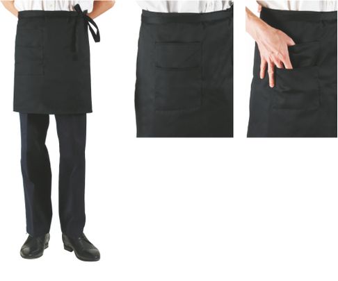 Klasyczna, elegancka zapaska kelnerska (fartuch) z kieszonką. Posiada podwójną kieszonkę z prawej strony. Wyprodukowano w UE. Produkt występuje tylko w kolorze czarnym.