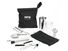 Kompletny zestaw, zawierający wszystkie podstawowe akcesoria barmańskie. W skład zestawu wchodzą: shaker bostoński 800ml stal nierdzewna polerowany, szklanica barmańska, sitko barmańskie, nalewak metalowy czarny, szufelka do lodu z ociekaczem, łyżka barmańska Japan, miarka barowa 25/50, rozgniatacz do owoców, otwieracz speed opener, nóż barmański Victorinox, ochraniacz na nóż oraz czarny ręcznik barmański. Torba wykonana z odpornego na wilgoć, zarysowania i uderzenia materiału.