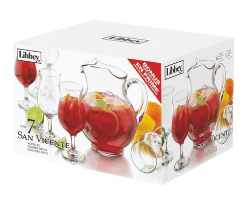 Elegancki zestaw sangria zawierający 6 kieliszków o pojemności 392 ml oraz estetyczny dzbanek. Doskonale nadaje się na praktyczny prezent. Całość zapakowana jest w eleganckie, prezentowe pudełko.